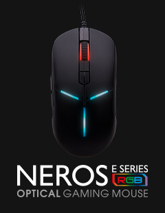 The NEROS RGB Gaming Mouse comes with four-zone RGB color illumination and features 7 dynamic lighting effects for a truly enhanced gaming atmosphere. The use of a PMW-3050 gaming grade optical sensor with up to 3200 DPI provides superior accuracy and precision gaming for when you need it most; and is equipped with durable gaming grade switches with a lifespan of up to 20-million clicks for long-lasting gameplay. With a right-handed ergonomic 6-button lightweight design, the NEROS RGB provides long-lasting comfort during periods of long play.